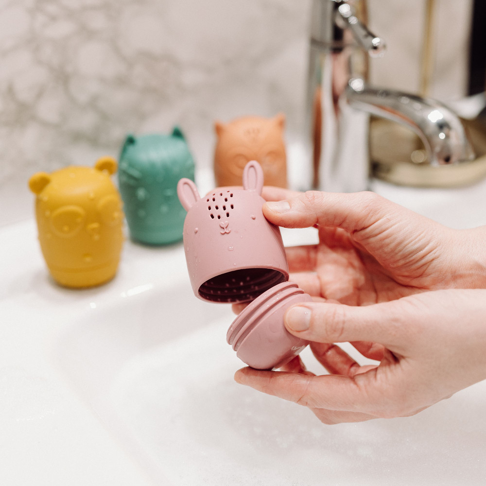 A 4 darab aranyos fürdőjátékból álló készlet különböző színekben és textúrákban minden fürdőzést még élvezetesebbé tesz. A játékok nyithatóak, ami lehetővé teszi azok alapos tisztítását és belsejében történő szárítást, megakadályozza a szennyeződések felhalmozódását és a penészképződést. Ez egy kényelmes és nagyon higiénikus megoldás, amelyet a gyermekek egészségének és biztonságának szem előtt tartásával hoztak létre. A fürdőjátékkészlet felkelti a gyermek érdeklődését, és a sok játéklehetőségnek köszönhetően kreatív gondolkodásra tanít. A játékok tetszés szerint nyithatók, felső és alsó részek kombinálhatók, ami fejleszti a gyerekek fantáziáját, kreativitását. Vízzel töltve vizet permeteznek, amikor megnyomják – így gyakorolják a pontosságot és biztosítják a szórakozást.. A Canpol babies fürdőjátékok 2 az 1-ben BPA-mentes puha szilikonból készültek, rágókaként is használhatóak. A Canpol babies fürdőjátékait úgy alakították ki, hogy illeszkedjenek a gyermek kezéhez, így a gyermek könnyen megfoghatja és biztonságosan játszhat, ami támogatja a fejlődését.