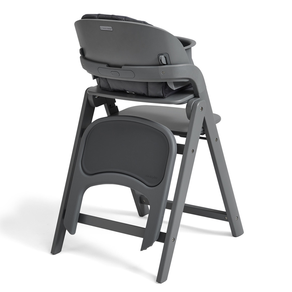 A tálca levehető, rugalmas szilikon betéttel rendelkezik, amely higiénikus, csúszásmentes és könnyen mosható. Az etetések után a tálca egy mozdulattal levehető, és a szék hátulján található tartóra helyezhető.