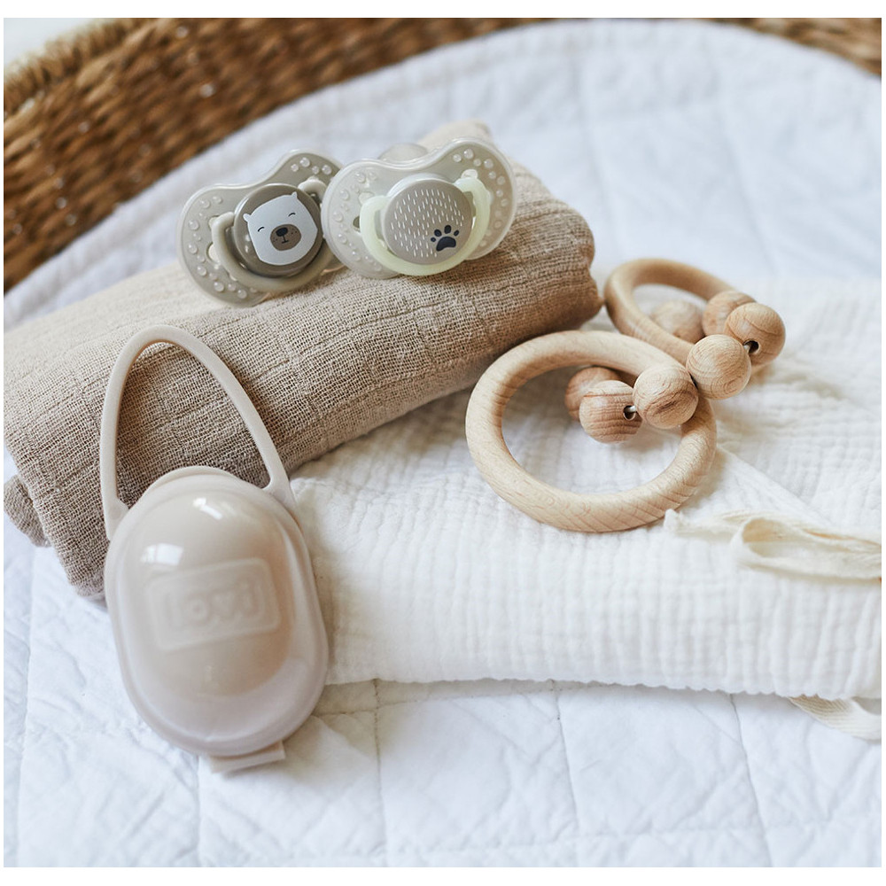 LOVI cumitároló doboz, amely lehetővé teszi a cumi kényelmes és higiénikus tárolását séták vagy utazások során. Védelmet nyújt a cuminak a szennyeződések és elvesztés elől.